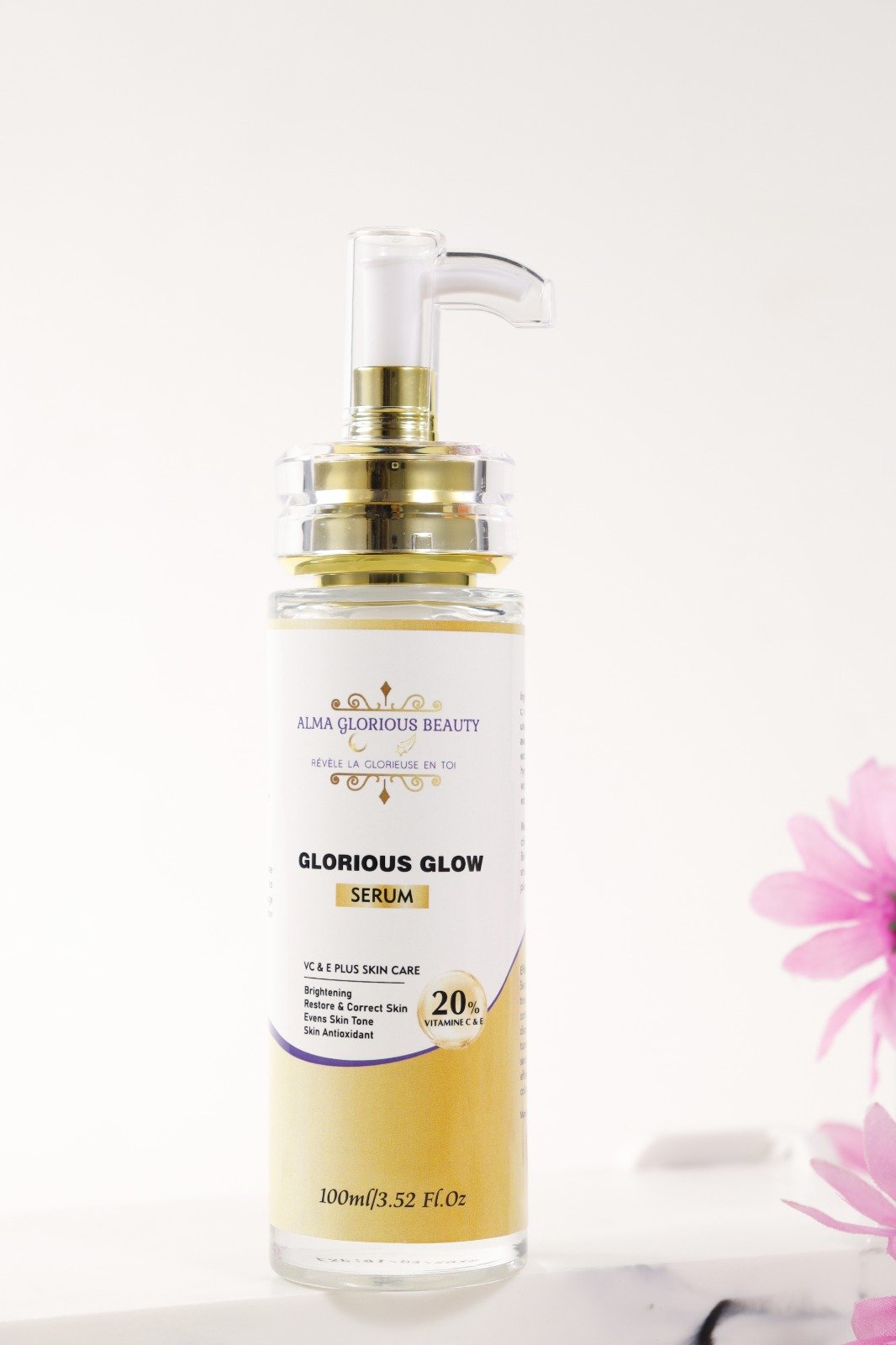 Biologique et organique, sans Paraben, sans Silicone, sans parfum, sans Sulfate, sans cruauté sur les animaux, Vegan, Organique, et fait de 20% de vitamine C et E; notre Glorious Glow Serum vous permettra de bénéficier de ses effets raffermissants, hydratants, anti-rides, anti-âges, nourrissants, éclaircissants, correcteur et restaurateur de pigmentation, antioxydant et aussi vous bénéficierez d’un visage neuf, lisse, illuminé, épuré avec des pores resserrés et une peau de visage encore plus éclatante.