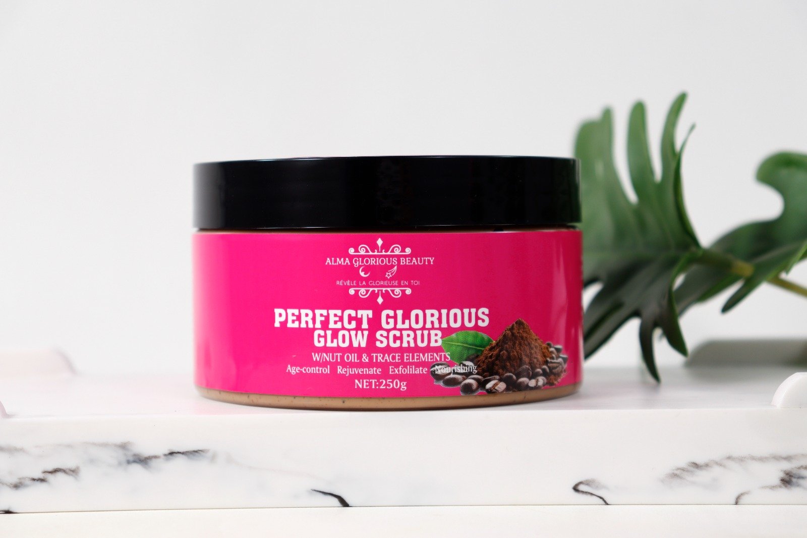 Effectuer une exfoliation mécanique autant de son visage que de son corps est un moment de détente intense; alors vu que vous emmenez le spa à domicile, à l’aide de l’eau tiède, commencez par vous mouillez le visage et le corps; ensuite, prendre une quantité suffisante de notre Perfect Glorious Glow Scrub et avec des mouvements circulaires, massez-vous tout en douceur et avec beaucoup de délicatesse tel un glorieux, une glorieuse la partie désirée. Ne soyez pas pressé car si vous voulez des résultats, il faut d’abord préparer son corps à faire un avec le reste de la gamme et ce, en éliminant les cellules mortes accumulées à la surface de la peau; une fois ces cellules éliminées, votre peau sera fin prête à se laisser transporter par les autres produits de la gamme.